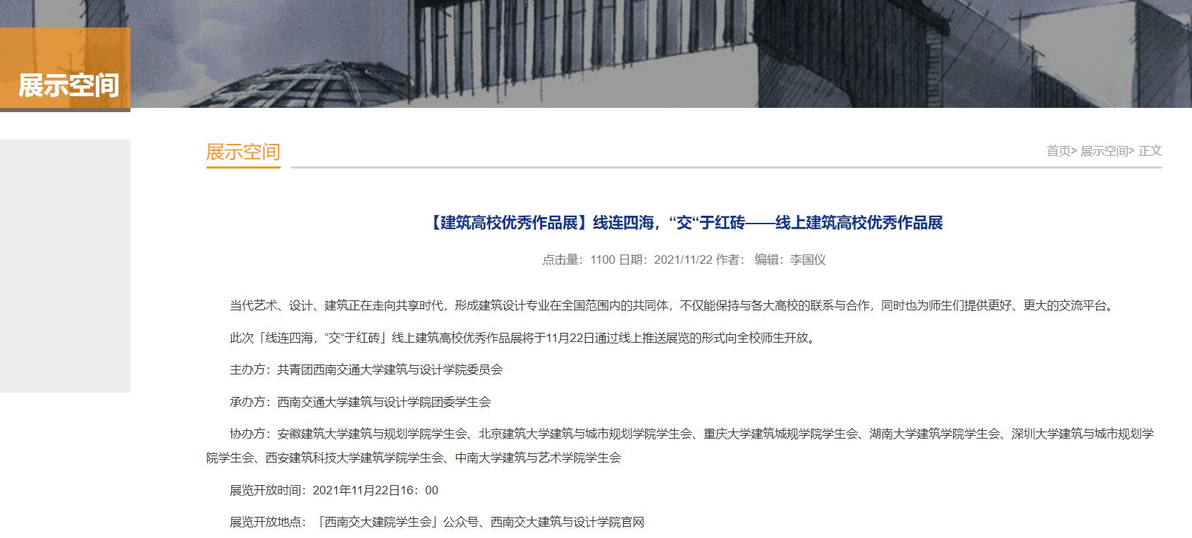 2021年11月22日,线连四海,“交”于红砖——建筑高校优秀作品线上展在西南交通大学建筑与设计云顶老虎机
