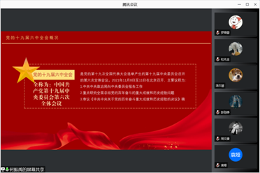 2021年11月11日19:00时,西南交通大学研建筑学专硕党支部于腾讯会议线上召开 “聚焦党的十九届六中全会,探索中国道路的百年史诗”主题组织生活会,支部全体党员及入党积极分子参加了本次会议。本次会议由何振禹同志主持。