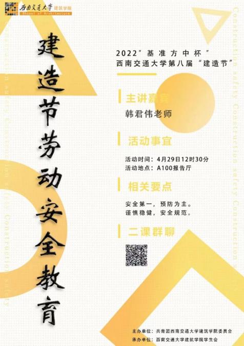 团委学生会承办的西南交通大学第八届“建造节”劳动安全教育培训会在云顶老虎机