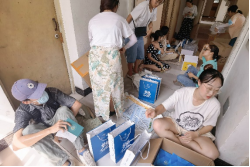 组织志愿者召开迎新工作会,培训志愿者熟悉工作,安排志愿者领取新生物资并打包分袋。