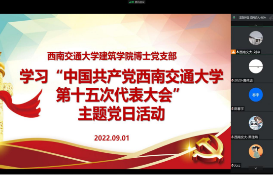 博士党支部采用腾讯会议组织召开学习中国共产党西南交通大学第十五次代表大会精神主题党日活动,深入学习贯彻会议精神。