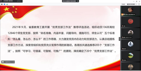 工程造价系教工党支部的“雁阵”工作法等,让支部成员深刻认识“优秀支部工作法”的意义。