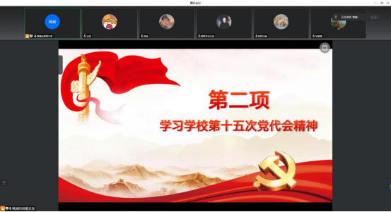 会议第一项,黄越同志介绍了中国共产党西南交通大学第十五次代表大会的基本情况,使同志们对大会主题、大会议程和大会成效有了全面的了解,同时强调本次大会是一次高举旗帜、牢记使命的大会,是一次鼓舞干劲、振奋精神的大会,是一次凝聚人心、团结进取的大会,在学校发展史上具有重要的里程碑意义。并强调学习宣传贯彻落实学校第十五次党代会精神,是全校上下当前和今后一个时期的重要政治任务,要求支部各位同志要主动加强学习。