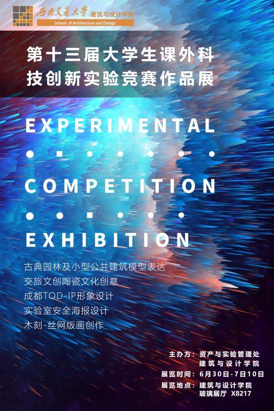 In order to boost the integrated development of disciplines as well as the diversity of students' design ability, the 13th SWJTU students' extracurricular scientific and technological innovation experiment competition has been successfully concluded, its fruits now displayed in x8217, No. 8 teaching building from June 30 to July 10. The competition was highly valued by the leaders of the college and strongly supported by the Asset and Laboratory Management Office. They came to the site for guidance many times during both the competition and exhibition, put forward their own suggestions, and summarized experience on how to improve the innovation, engineering level and influence of the competition.