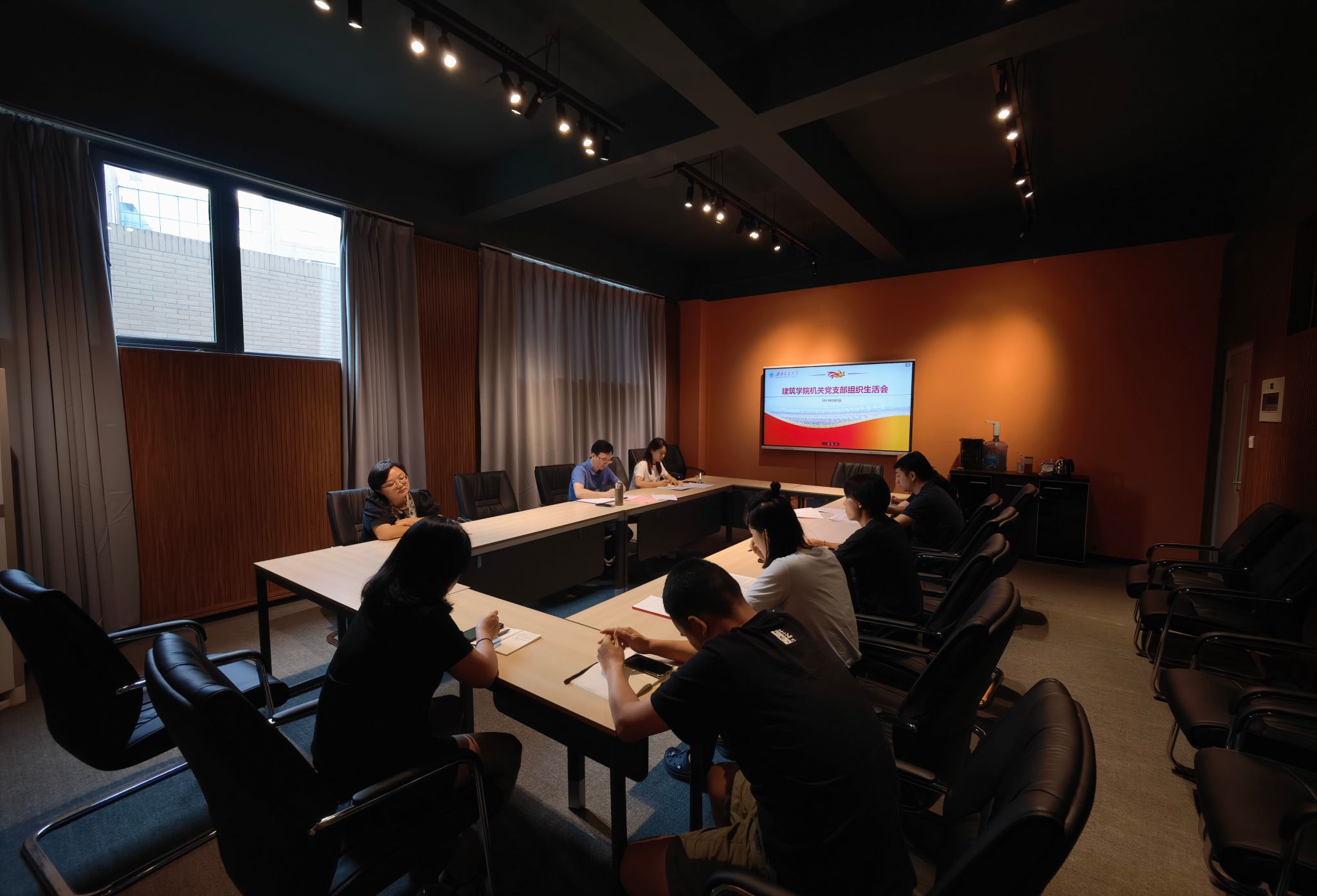 会议室召开“学习贯彻习近平新时代中国特色社会主义思想主题教育专题组织生活会”。会议由支部书记曾宁莎主持,支部全体党员参加。