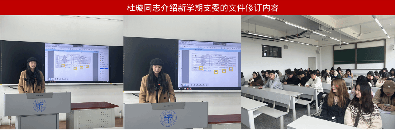 最后党支部书记杜璇同志再次强调了党史学习教育的重要意义,以及党员同志遵守党章党规的必要性,向大家宣读了新学期支委的文件修订内容,做到公正公开透明的支部组织管理。