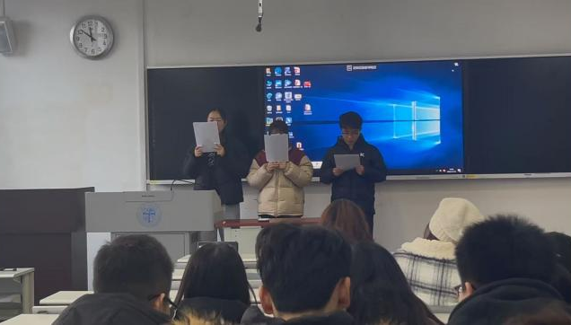 支部会议第二部分,穆铭宇同志先就11月底参加学校党委学生工作处组织的“扬华先锋”学生党员培训工作的所感所悟与支部同志们进行了分享,强调了党支部各相关活动的纪律性。接下来,穆铭宇同志对培训期间前往绵阳“两弹城”进行实践教育的经历与感受作了分享,着重介绍了两弹城的建设故事与建设背景与邓稼先院士等两弹一星元勋在,绵阳两弹城的工作经历。随后,支部同志分为8个小组分批次到台前以ppt、诗朗诵等方式展示歌颂“两弹一星”精神、“两弹一星”元勋的故事以及两弹城的建设过程,在每一组展示之后,其他同志们踊跃举手,表达自己对分享内容的相关见解以及自己的收获。分享结束之后,穆铭宇同志就上述内容进行了总结,并通过选择题的方式重温精神内涵和重要的时间节点,他强调,作为新时代的青年共产党员,应该向“两弹一星”元勋们学习这种肯吃苦、热爱祖国、不追名逐利、刻苦钻研的精神,并将这种精神应用到自己的工作与学习中。