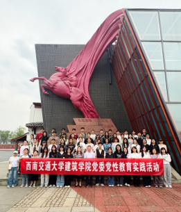 党委书记胡伟,专职组织员王少婧,辅导员贾世南及60名新党员集合前往郫都区烈士陵园祭奠缅怀革命英烈。纪念馆庄严肃穆,翠柏环绕,烈士纪念碑巍峨耸立,仿佛在诉说着那段波澜壮阔的革命历史。在胡伟的带领下,党员们宣读、重温入党誓词,行鞠躬礼并肃立默哀,依次向烈士纪念碑敬献鲜花,表达对革命先烈的崇高敬意和深切悼念。