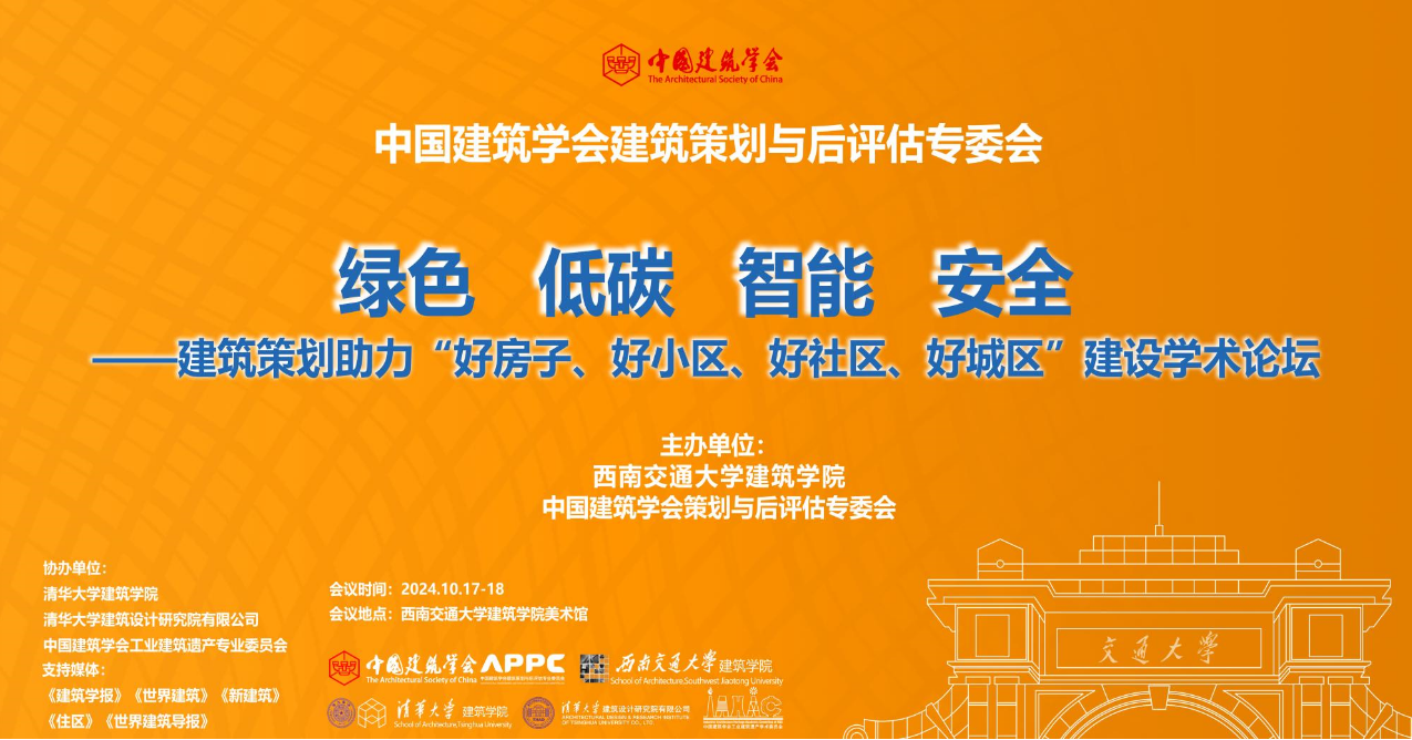 10月17日至18日,“绿色、低碳、智能、安全——建筑策划助力‘好房子、好小区、好社区、好城区’建设”学术论坛在西南交通大学隆重召开。